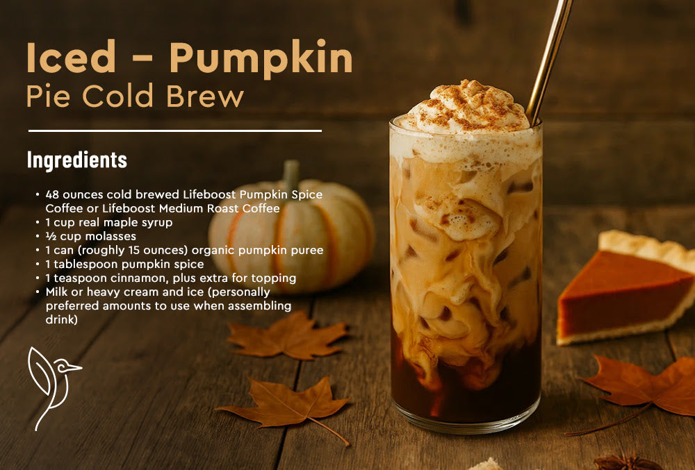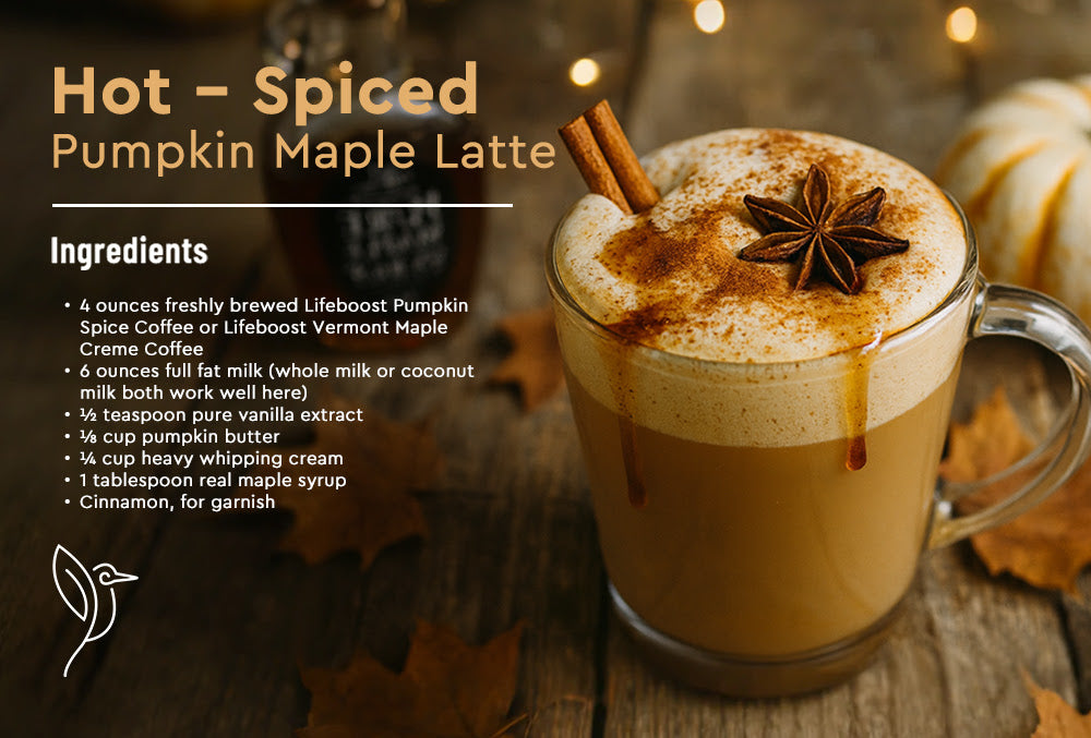 - 4 ounces freshly brewed Lifeboost Pumpkin Spice Coffee or Lifeboost Vermont Maple Creme Coffee