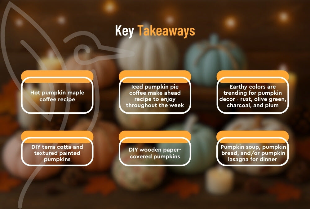 Now that weโve got a carefully crafted, yummy pumpkin coffee treats in hand, letโs explore some crafts and decor ideas that are taking the world by storm this fall season.ย